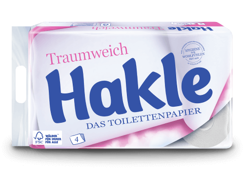 The particularly gentle, soft 4-ply toilet paper from Hakle. Hakle Traumweich ensures gentle cleanliness and safety. The white and extra-soft toilet paper nourishes and cleans particularly gently. Of course, each leaf has the unique Hakle feel-good pillows.